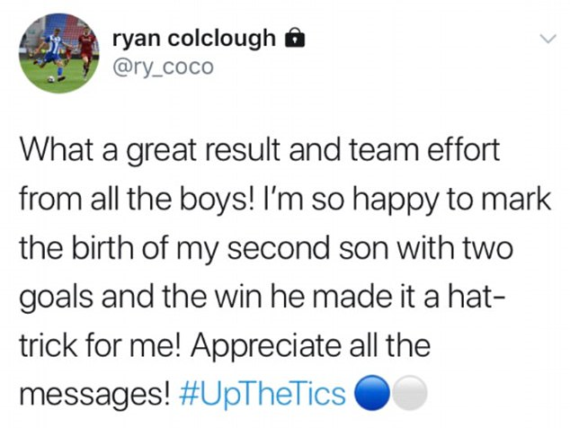 Pembantu kelab Liga Satu itu, Leam Richardson memberitahu: "Separuh masa pertama kami menerima pesanan bahawa air ketuban pasangannya telah pecah dan melahirkan anak kedua.