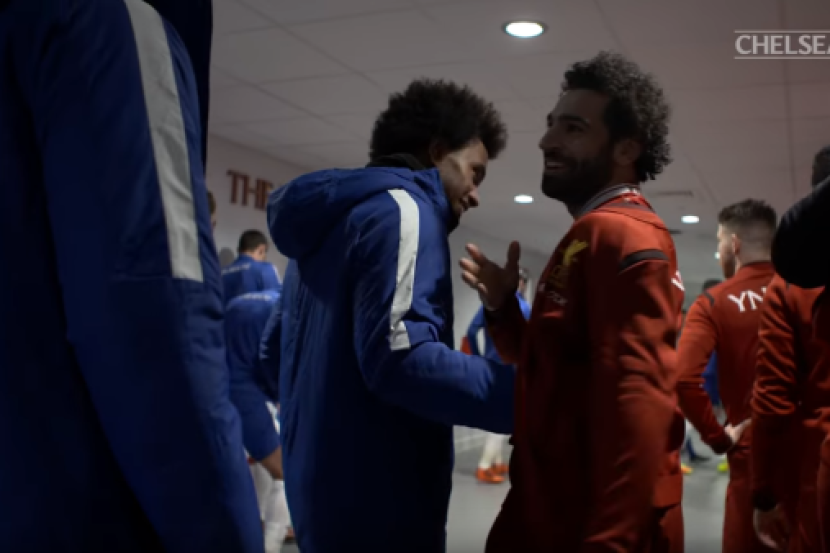 Salah turut dirakam bertemu dan memeluk William dan David Luiz di dalam terowong.