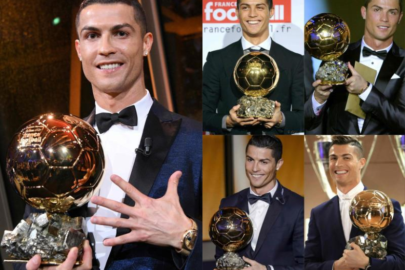Pemain berusia 32 tahun itu kini merekodkan lima trofi tersebut yang sekaligus menyamakan pencapaian pesaing terdekatnya dari Barcelona, Lionel Messi yang menguasi trofi (Ballon d'Or) paling banyak sejak sedekad lalu.