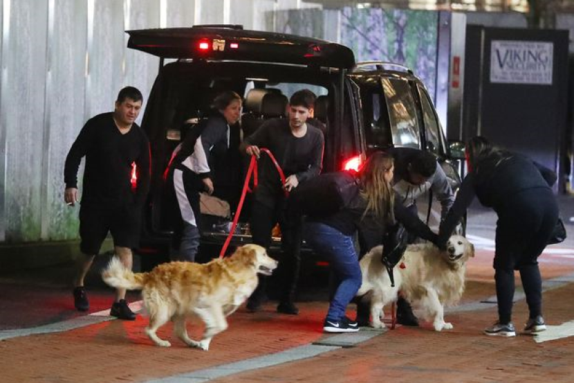 Saudara Alexis Sanchez tiba di Hotel Lowry Hotel bersama dengan dua anjing perliharaan pemain itu, Atom dan Humber. Foto Eamonn and James Clarke