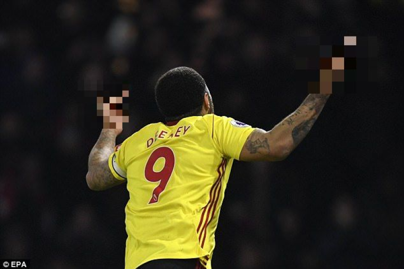 Sebaik sahaja wisel gol dibunyikan, Deeney berlari dan menunjukkan isyarat lucah tersebut.