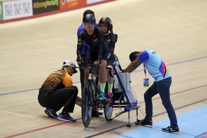 Sementara pingat gangsa negara disumbangkan Muhammad Afiq Afify Rizan-Muhammad Khairul Adha Rasol dalam acara 1Km Ujian Masa (B); Shukor Farhan Suliman (1Km Ujian Masa C1-C3) dan Mohd Najib (1Km Ujian Masa C4-C5). - Bernama