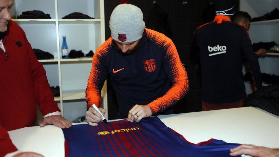 Barcelona juga turut memuat naik video salah seorang pemainnya, Lionel Messi sedang menandatangani jersi untuk Borges.
