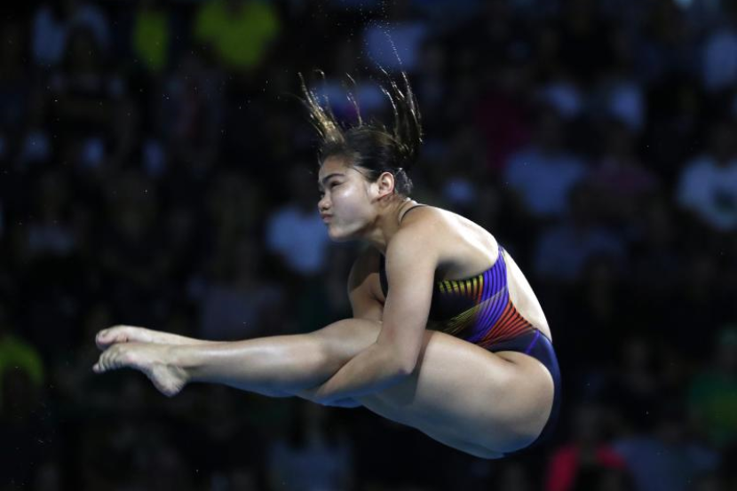 China menguasai acara tersebut dengan pingat emas dan perak masing-masing dirangkul oleh juara Sukan Olimpik 2016, Shi Tingmao (374.35 mata) dan Wang Han dengan 355.05 mata.