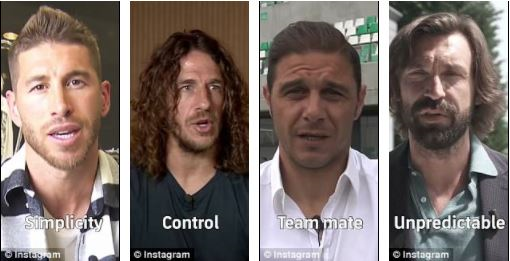 Dari kiri ke kanan: Ucapan oleh Sergio Ramos, Carles Puyol, Rafael Marquez dan Andrea Pirlo kepada Iniesta.