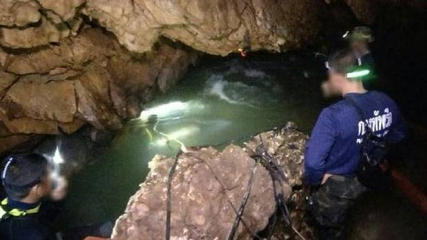 Pasukan penyelamat melakukan selaman di dalam gua yang dipenuhi air banjir.