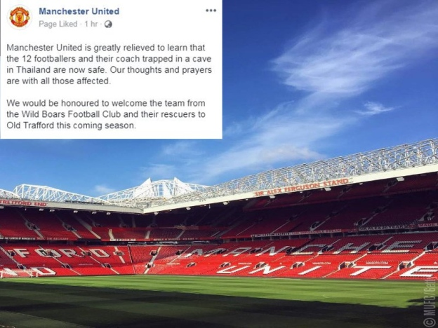 "Manchester United bersyukur dan lega kesemua 12 pemain dan jurulatih mereka yang terperangkap dalam gua di Thailand telah selamat.