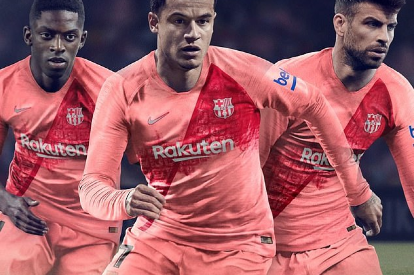 PASUKAN Barcelona memperkenalkan kit berwarna merah jambu untuk kempen kali ini.
