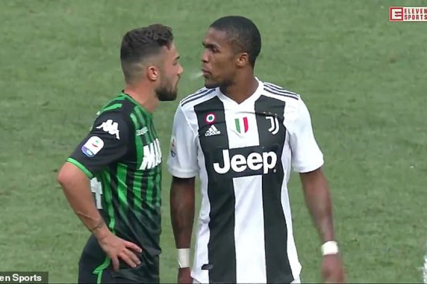 Pemain sayap Brazil itu hilang sabar apabila 'diberi' siku dan tandukan sejak awal permainan sehingga bertindak meludah muda Federico Di Francesco.