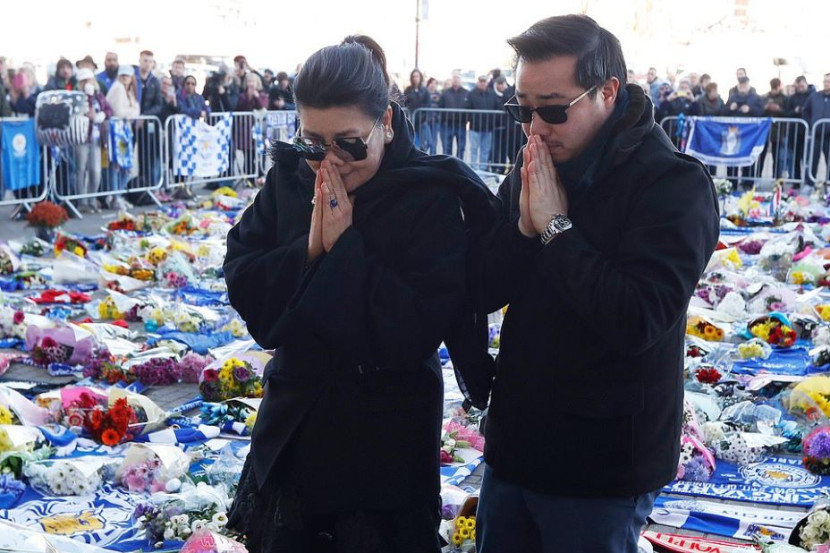 ANAK mendiang Vichai Srivaddhanaprabha mengetuai barisan memberi penghormatan kepada pemilik Leicester City di Stadium King Power.
