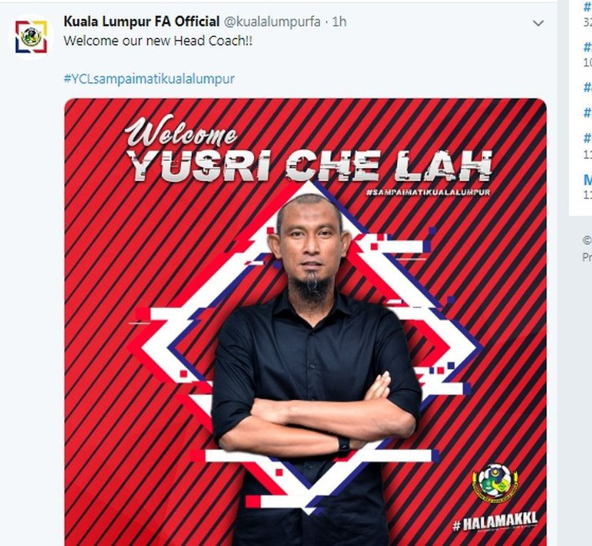 PETALING JAYA: Yusri Che Lah secara rasminya dilantik sebagai ketua jurulatih pasukan Kuala Lumpur musim depan.