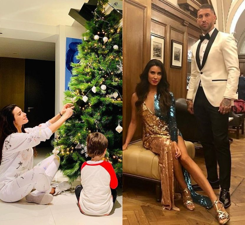 Isteri Sergio Ramos, Pilar Rubio (kiri) menyiapkan dekorasi pokok krismas bersama salah seorang mereka.