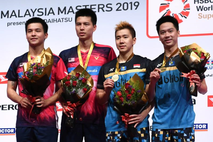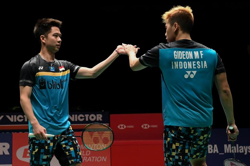 Marcus Fernaldi Gideon dan Kevin Sanjaya Sukamuljo berada dalam kelas tersendiri untuk menjuarai Malaysia Masters 2019. - Foto AFP