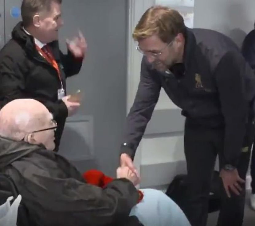 Penyokong veteran itu turut dibawa melawat sekitar stadium dan berborak dengan Klopp dan Dalglish.