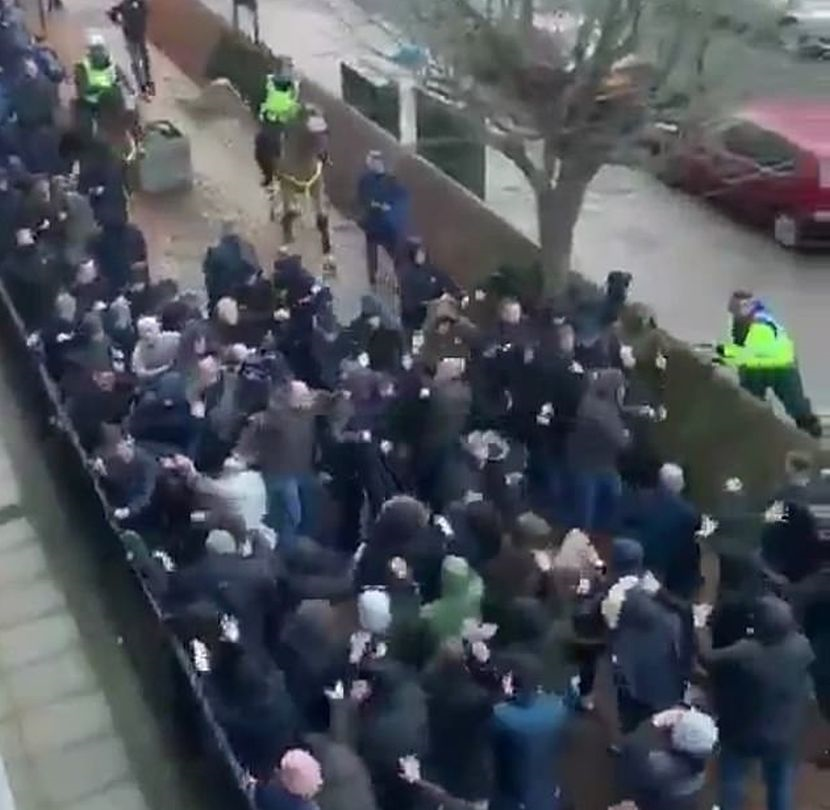 Rakaman video menyaksikan sekumpulan penyokong dari kedua-dua pasukan bergaduh di luar stadium sebelum sepak mula berlangsung.