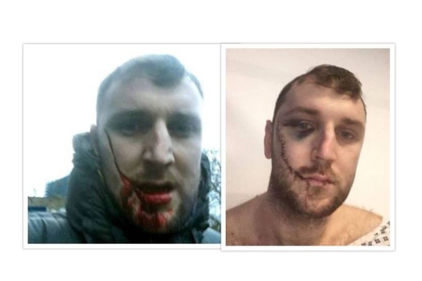 Jay Burns memuatnaik gambarnya di Facebook menunjukkan pipi kanannya dijahit bermula dari hujung bibir hingga ke hujung matanya.