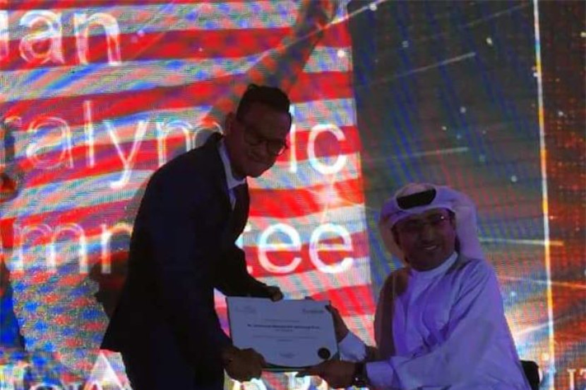 Anugerah disampaikan Presiden Majlis Paralimpik Emeriyah Arab Bersatu, Mohamed Alhameli dan Presiden Jawatankuasa Paralimpik Asia, Majid Rashed.