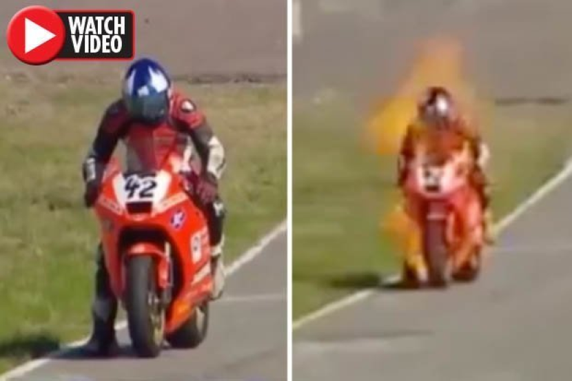 SEORANG pelumba mengalami kecederaan setelah motor berkuasa besar yang dinaikinya terbakar.