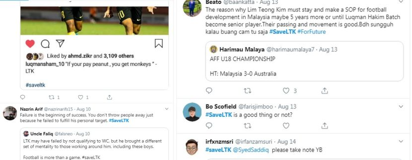 PENGARAH Teknikal Akademi Mokhtar Dahari (AMD) Lim Teong Kim tidak mengharapkan pujian untuk dirinya, tetapi dia amat menghargai inisiatif segelintir peminat dan pemain-pemainnya yang menggunakan #SaveLTK.