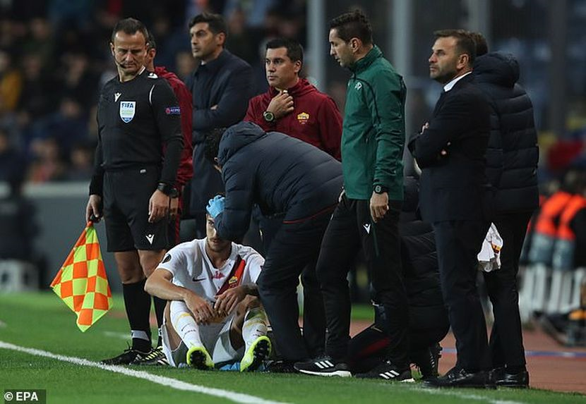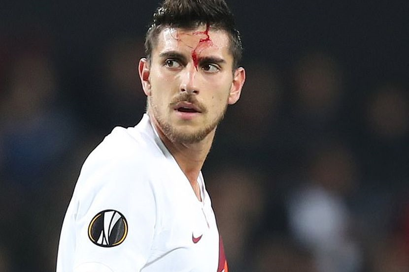 PEMAIN tengah Roma, Lorenzo Pellegrini meninggalkan padang dalam keadaan dahi berdarah gara-gara dibaling duit syiling.