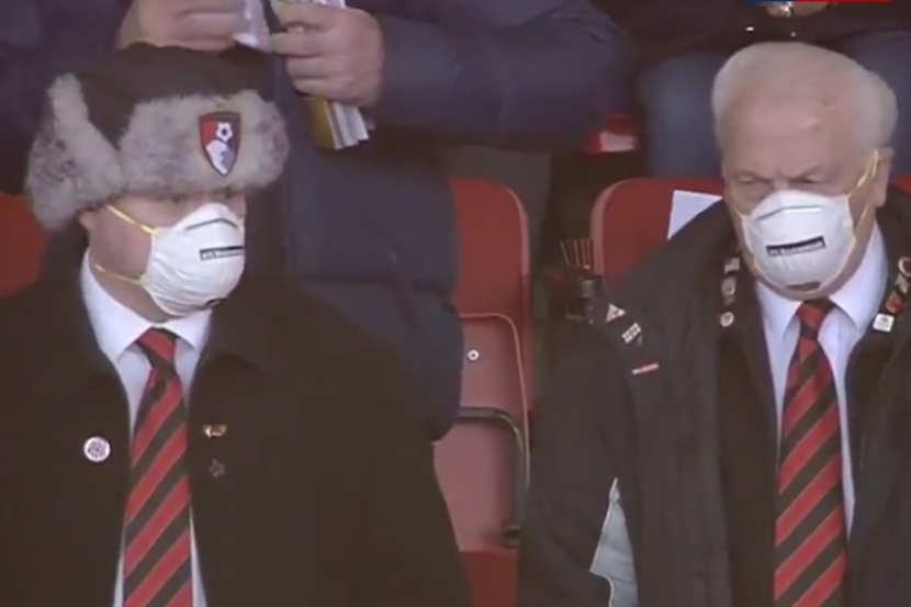 PEMILIK kelab Bournemouth, Jeff Mostyn dilihat memakai topeng muka untuk melindungi dirinya daripada dijangkiti wabak novel koronavirus, semasa pertembungan pasukannya dengan Aston Villa pada Sabtu.