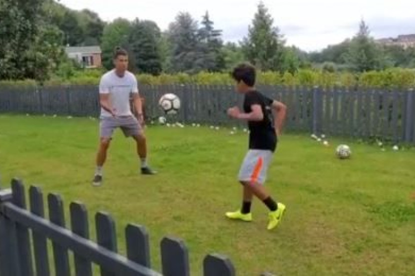 PEMAIN sensasi, Cristiano Ronaldo mencuri tumpuan ramai apabila dia berkongsi video sedang melatih anaknya bermain bola sepak.