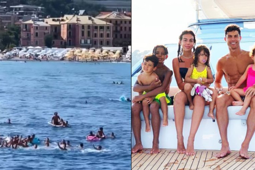 Peminat mula mengerumuni kapal layar Ronaldo sebaik sahaja menyedari kelibat bintang Juventus itu. Foto: Thesun.co.uk