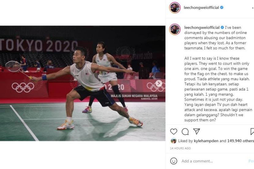 Hal ini diluahkan sendiri Ketua Kontinjen Malaysia (CDM) ke Sukan Olimpik Tokyo 2020 Datuk Lee Chong Wei yang berasa sedih dengan komen-komen negatif yang dilemparkan secara dalam talian terhadap pemain badminton negara.