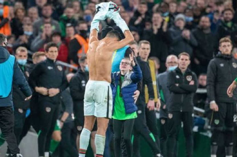 Addison Whelan, 11, merempuh kawalan keselamatan di Stadium Aviva, Dublin ketika sesi kelayakan Piala Dunia antara Ireland dan Portugal pada Khamis sebelum meluru ke arah Ronaldo.