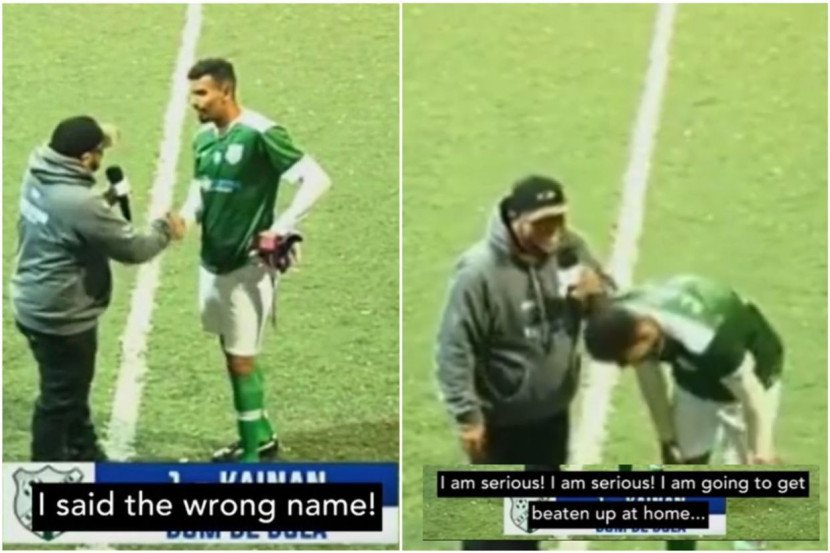 Lupakan tentang menyelamatkan tendangan, penjaga gol ini berusaha untuk ‘menyelamatkan hubungannya’ selepas tersalah menyebut nama teman wanitanya semasa wawancara selepas perlawanan.