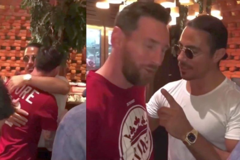 DIDAKWA 'lapar' perhatian, Salt Bae kini berkongsi video lama dia memeluk Lionel Messi. Dia yang sebelum ini dibidas kerana mengganggu azimat Argentina untuk swafoto selepas perlawanan akhir Piala Dunia FIFA 2022, Ahad lalu. ARTIKEL BERKAITAN: Presiden FIFA mahu Piala Dunia diadakan tiga tahun sekali Tukang masak Turki atau nama sebenarnya Nusret Gökçe telah dirakam memegang bahu Messi sekurang-kurangnya dua kali. Meskipun Messi cuba menolak, namun bintang Angle Di Maria itu akhirnya bersetuju untuk bergambar. Messi juga meniru aksi yang sering dilakukan Salt Bae. Susulan daripada insiden yang memalukan itu, Gökçe membalas dengan catatan baharu kepada 50 juta pengikut Instagramnya. Malah video turut dimuatnaik bersama dengan kapsyen 'The Champion'. Ia adalah video dari satu-satunya pertemuan mereka sebelum ini pada 2018 ketika Messi dan isterinya makan malam di restoran stik Gökçe di Dubai. Bintang Perancis Paul Pogba juga berada di sana. Pun begitu, rata-rata pengikutnya mengandaikan ia adalah cubaan untuk membuktikan dia berkawan dengan Messi selepas mendapat sikap dingin beberapa hari sebelum ini. Pada November 2018, Messi makan di restoran stik Dubai Gökçe bersama isterinya Antonela Roccuzzo dan rakan. - The Sun Dapatkan info dengan mudah dan pantas! Join grup Telegram mStar DI SINI