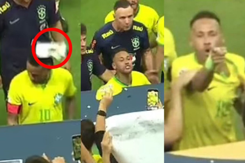 Sebagaimana dirakamkan dalam video, balingan itu tepat mengenai kepala Neymar ketika dia berjalan menuju ke terowong untuk kembali ke bilik persalinan.