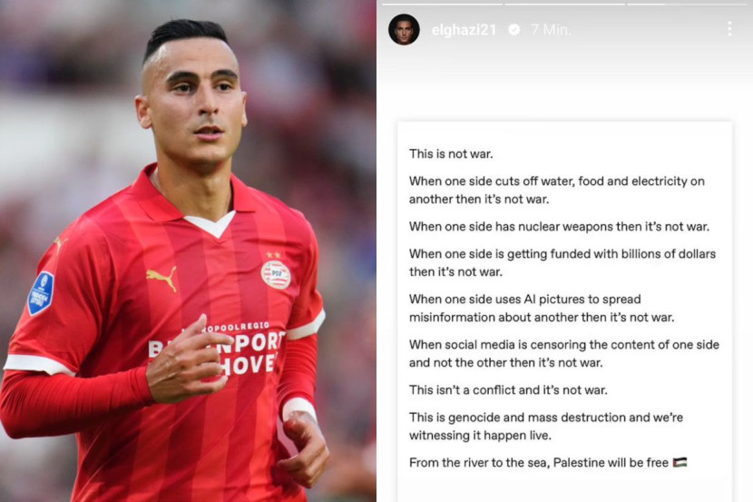 Terdahulu, El Ghazi merupakan salah seorang pemain yang jarang bercakap mengenai konflik Israel-Palestin.