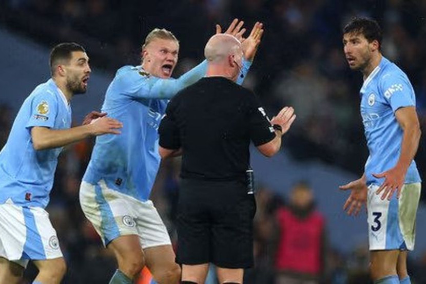 Beberapa pemain bintang City, termasuk Erling Haaland yang berang, mengerumuni pengadil Simon Hooper selepas beliau gagal memberikan 'advantage' pada detik terakhir perlawanan.