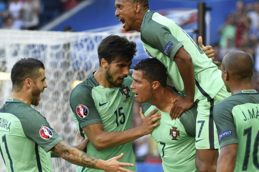 Portugal - Patricio, Eliseu, Carvalho, Pepe, Vieirinha, Carvalho,Gomes, Moutinho, Mario, Nani, Ronaldo (simpanan)- Renato, Danilo, Quaresma.