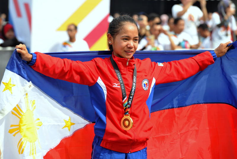 Tabal Mary Joy Reyes memenangi pingat emas pertama bagi Filipina dalam acara Marathon Wanita.- fotoBERNAMA