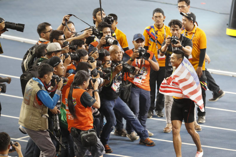 KUALA LUMPUR: Raja pecut negara, Khairul Hafiz Jantan memenangi acara 100m lelaki Sukan SEA di Stadium Nasional Bukit Jalil pada malam Selasa.