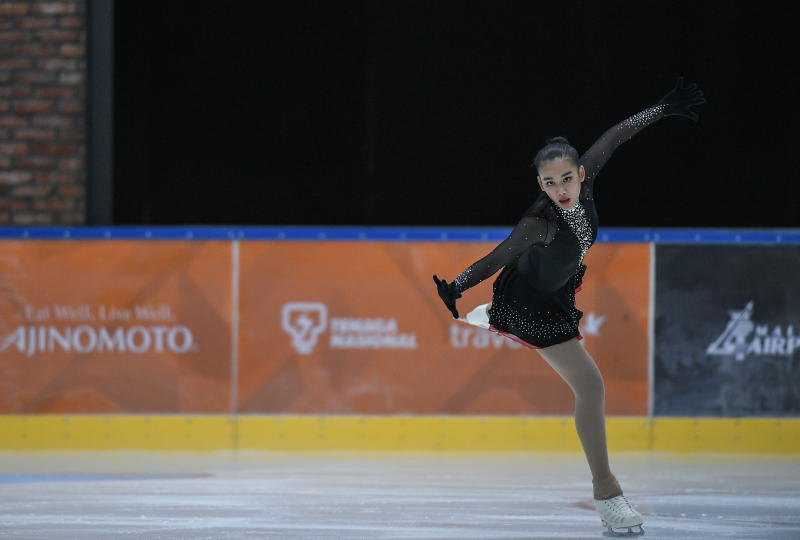 Atlet negara Aina Sorfina Mohd Aminudin meluncur dengan gaya menarik pada acara Luncur Ais kategori 'Senior Ladies Free Skating' Sukan SEA KL2017 di Empire City pada Ahad.