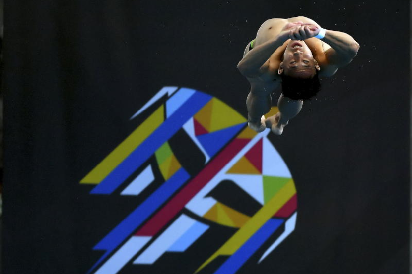 Penerjun negara Cheong jun Hoong melakukan terjunan acara akhir 1 Meter Papan Anjal Sukan SEA ke 29 KL2017 di Pusat Akuatik Nasional, Bukit Jalil pada Ahad.