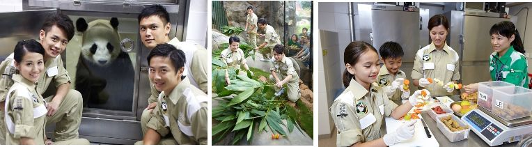 Anda boleh merasai pengalaman menjadi penjaga panda. Hanya sarung pakaian khas dan anda kini bersedia untuk membuat kek panda dan menyediakan buluh untuk dimakan haiwan comel ini.