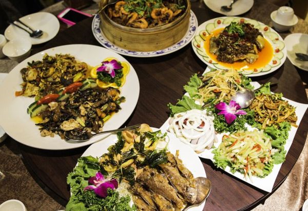 Restoran ini menghidangkan masakan ala Thailand antaranya ikan stim, telur dadar, tom yam seafood dan ikan goreng.