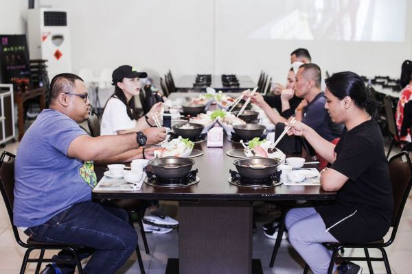 Kumpulan media menikmati hidangan stimbot di Restoran Tea & Amp: Rice Resort. FOTO SHAHRUL IZZAT