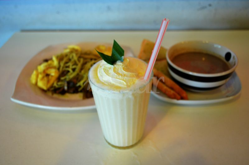 Bila dahaga, Cik Dhia cuba coconut shake pula yang hanya berharga RMRM5.85 segelas.