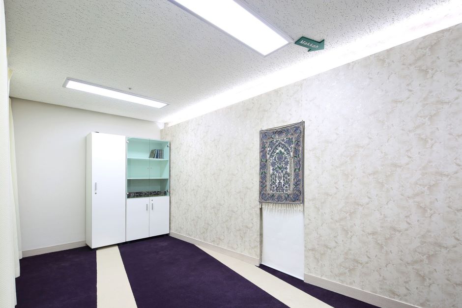 Beberapa naskhah al-Quran dan sejadah turut disediakan di atas rak yang disediakan, termasuklah penunjuk arah kiblat.