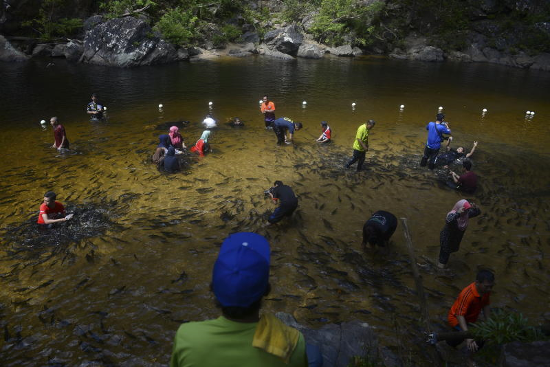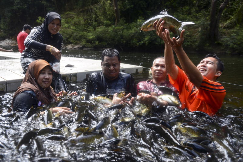 Usaha menjinakkan kelah bermula dengan cara ‘membina kepercayaan' antara kawanan kelah dengan manusia.