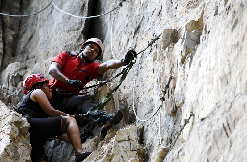 Aktiviti pertama dilakukan selepas mendaftar masuk ke Glamping adalah memanjat dinding batu setinggi 70 meter.