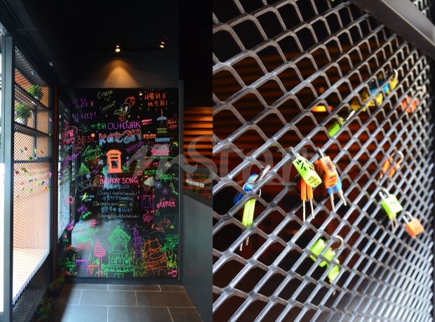 Dinding kaca yang dilukis dengan pen 'marker' berwarna-warni di bahagian pintu masuk dan jaring mangga yang dikhaskan untuk pelanggan Outdark terutamanya bagi pasangan yang bercinta adalah antara sudut bergambar yang tidak harus dilepaskan.