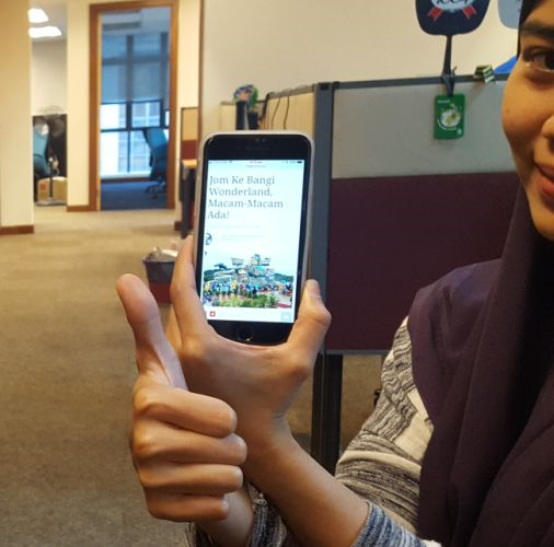 LANGKAH 1: Ambil GAMBAR anda/ahli keluarga/rakan bersama ARTIKEL 'Jom Ke Bangi Wonderland, Macam-Macam Ada!' yang telah disiarkan dalam mStar Online pada 9 Mac lalu, dengan cara yang paling kreatif.
