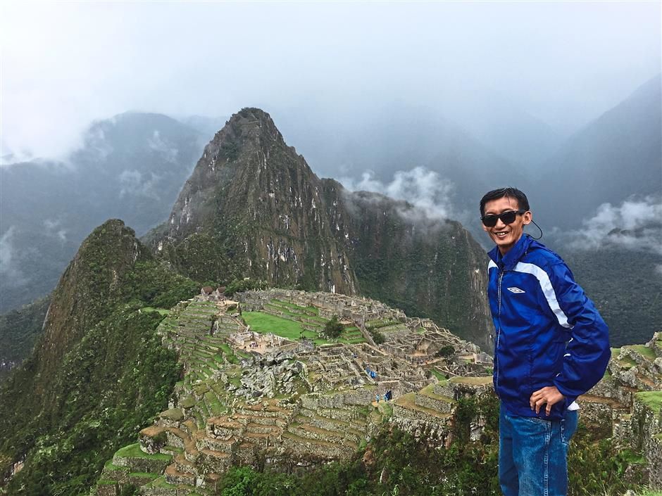 Clement Lee teruja apabila tiba di puncak Machu Picchu, Peru.