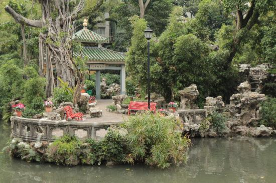 Dikelilingi tembok tinggi dan landskap tasik, bunga-bungaan di situ kelihatan persis taman klasik Cina yang sering dipaparkan dalam filem.